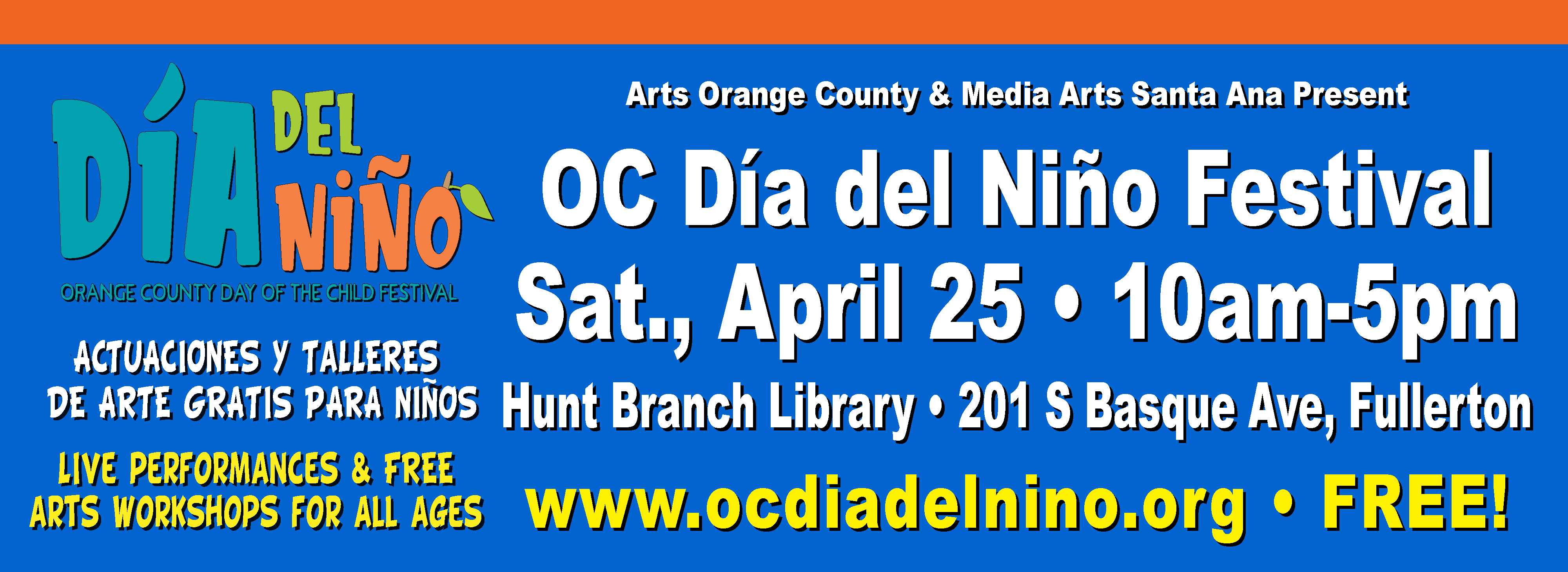 Media Arts Santa Ana (MASA) is proud to be a co-presenter of Arts Orange County's OC Día del Niño Festival. The 2023 festival was held at the OC Fair & Event Center in Costa Mesa on April 15-16 and Pacific Drive Elementary in Fullerton on Sat., April 29. Here are highlights from this year's festival, which featured 29 performance groups and 23 workshop artists from throughout the region! For more information about the OC Día del Niño Festival, visit www.ocdiadelnino.org